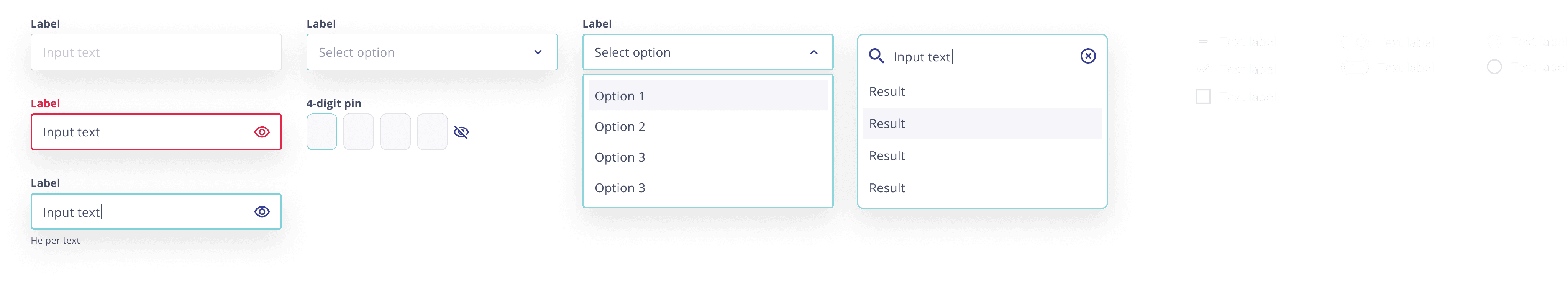 Atoms are the most basic components. They are the building blocks of a design system such as buttons, lines, shapes, icons, text fields, text labels, etc. - this is a selection of the atoms we used in our design system.